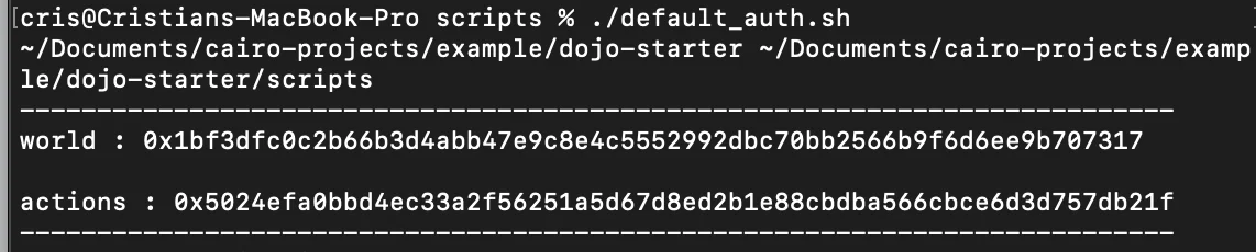 player addressandplayer privatekey inAssets/Spawn And Move/Dojo5.0Datamatch the output of the Katana terminal. - Verify that the