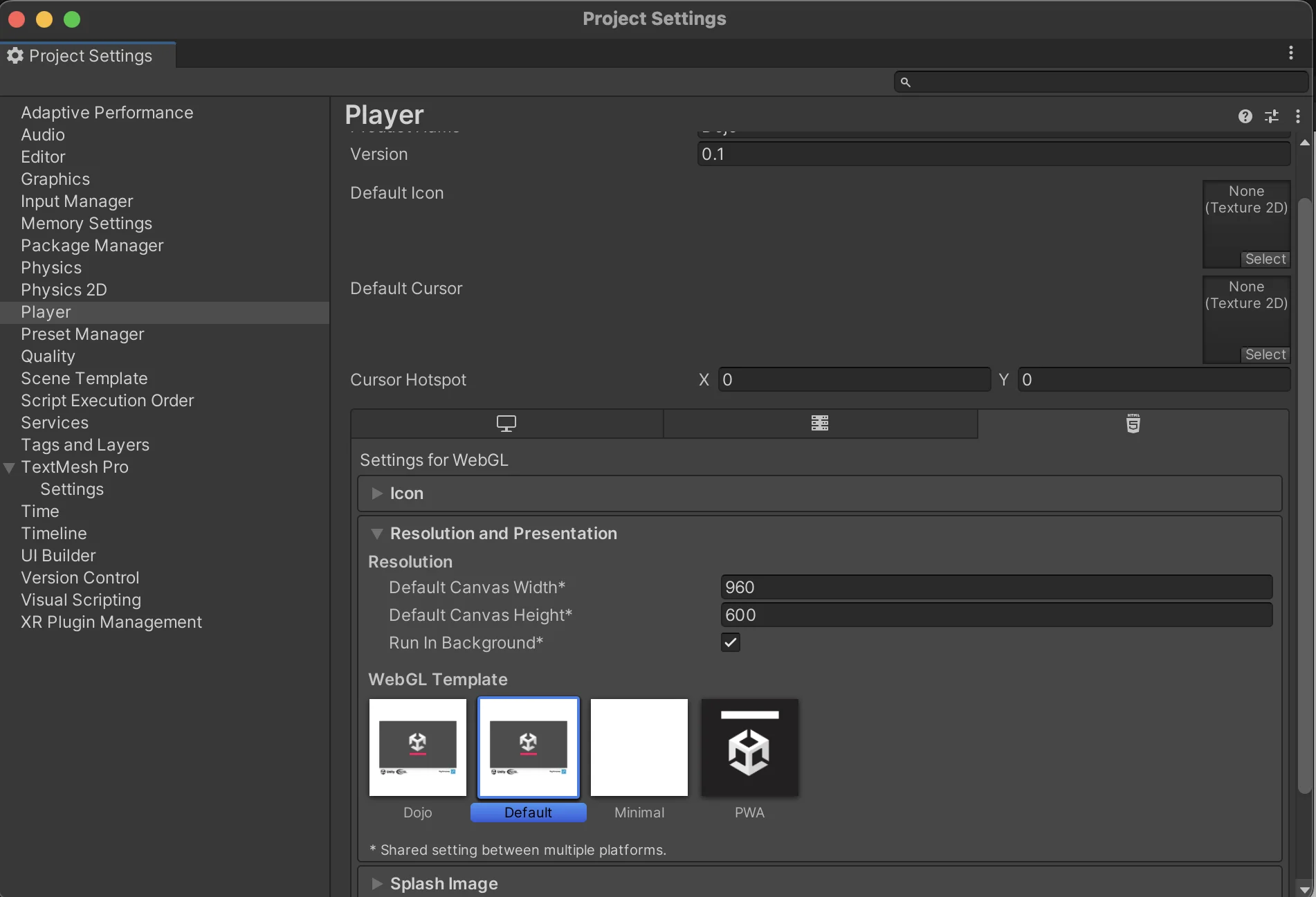 Configure the WebGL player settings