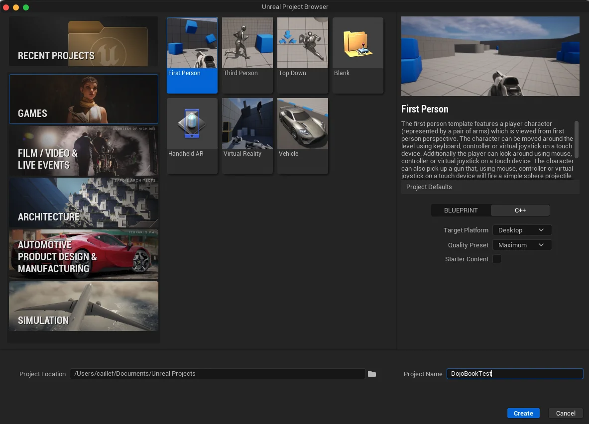 Launch Unreal Engine 5 and create a new project or open an existing one where you'll implement dojo.unreal.