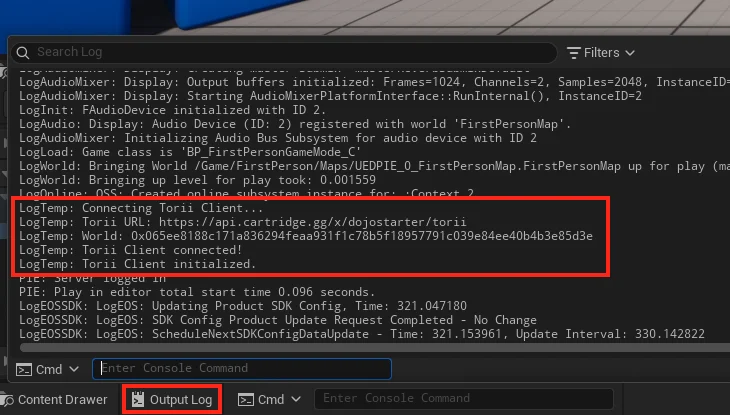 Launch the game and verify the connection in the Output Log