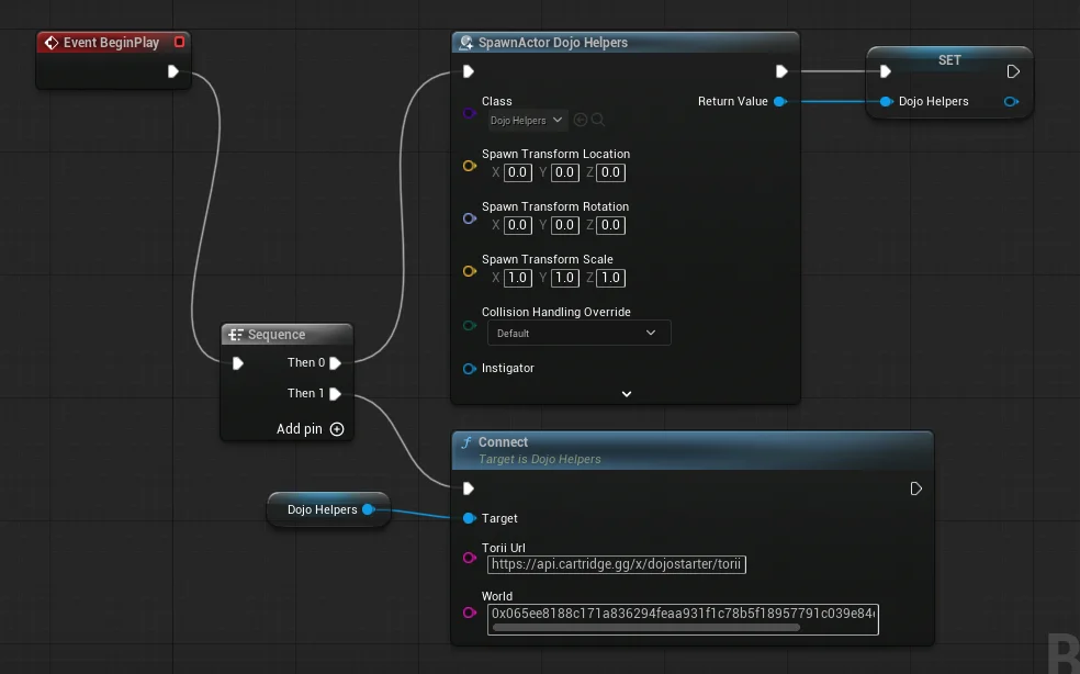 If you have set up everything correctly, you will have a connected Torii client in a Blueprint.